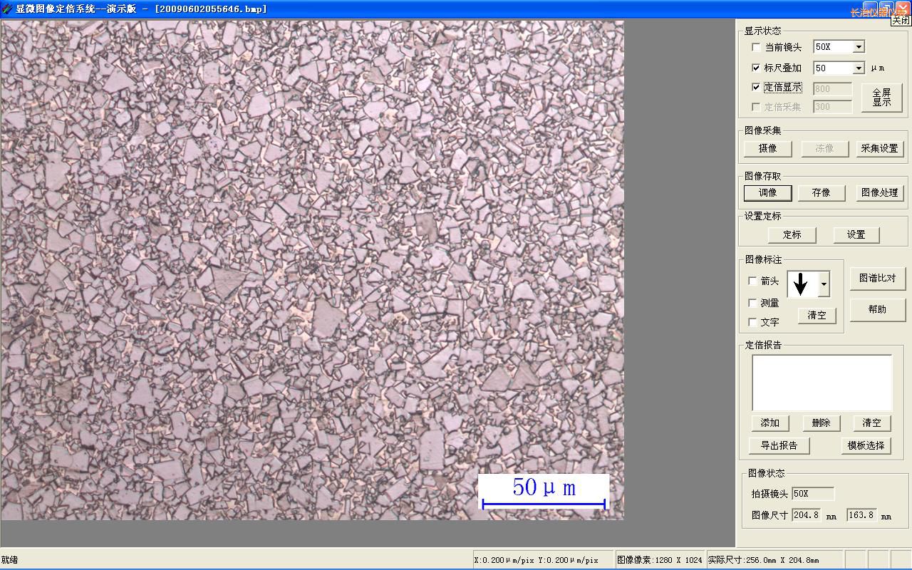 在金相圖像系統(tǒng)中,,常常要進(jìn)行圖像定倍。但傳統(tǒng)的定倍軟件,只有“定倍打印”的單一功能,且打印出的圖片清晰度差,不能滿足金相圖像的尤其是高檔金相圖像用戶對(duì)打印分辨率的要求。