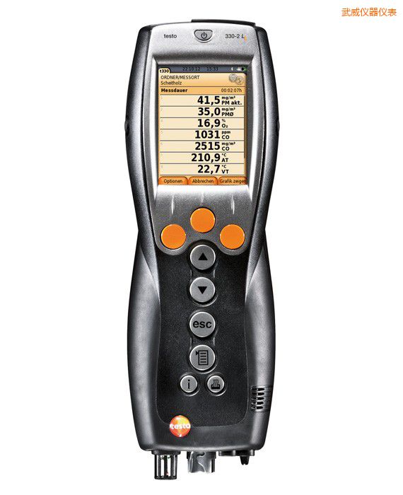 產(chǎn)品介紹: testo 330 LL配備增強(qiáng)版的O2和CO傳感器,,使用壽命長達(dá)6年以上,更可享受德圖的3年免費保修。人性化的結(jié)構(gòu)設(shè)計,方便用戶自行更換。 優(yōu)點一覽: 圖形處理測量數(shù)據(jù); 全面的儀器診斷功能:使用簡單的“紅綠燈”表示方法,簡單易懂; 壓力測量可達(dá)300 mbar; 用戶自定義燃料; O2,,°C,hPa和帶H2補(bǔ)償?shù)腃O測量通過TUV測試認(rèn)證(1. BImSchV/ EN 50379 Part 2標(biāo)準(zhǔn)); 強(qiáng)大儀器內(nèi)存:500,000個讀數(shù); USB接口,可通過PC軟件讀取數(shù)據(jù); 含ZIV驅(qū)動,適于各種標(biāo)準(zhǔn)工業(yè)軟件; 煙氣探針